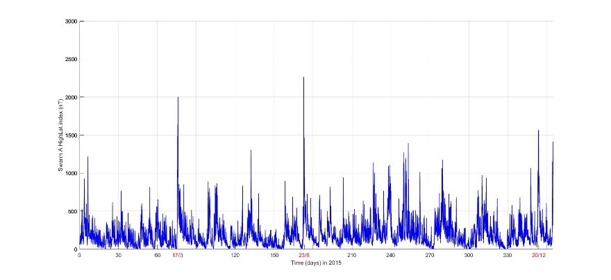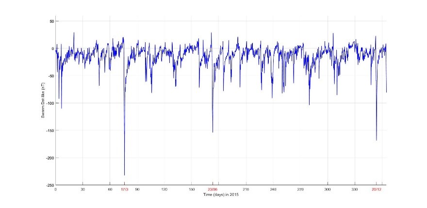 3.1 Swarm A, Dst- and AE-like indices analysis for year 2015